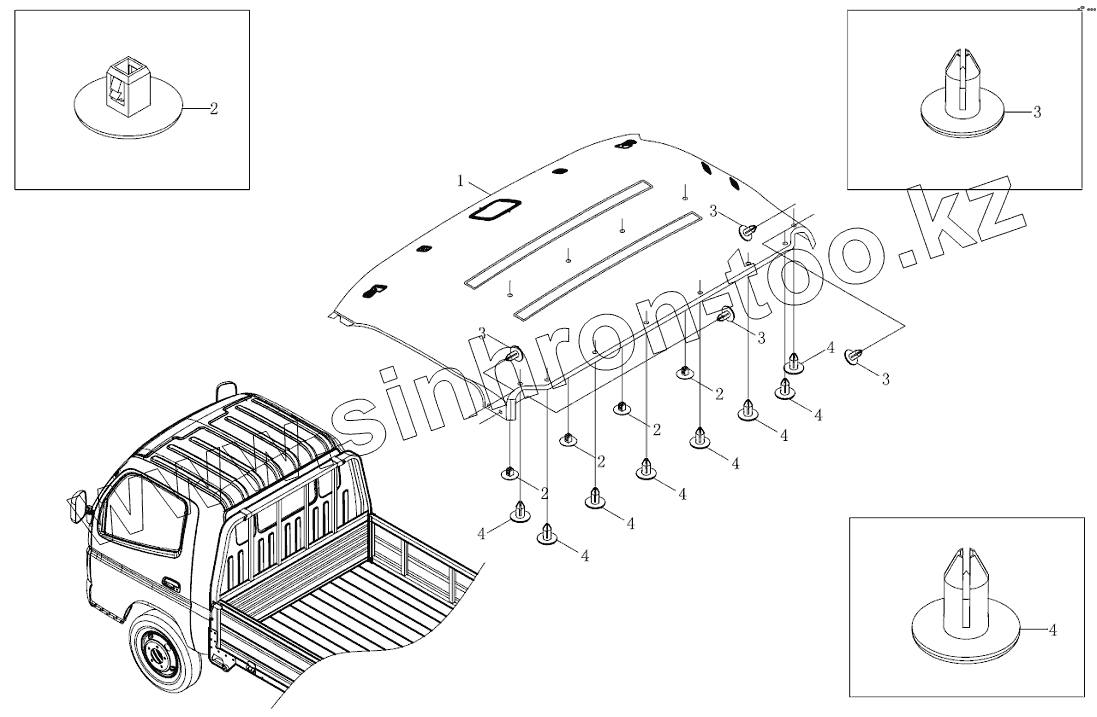 Каталог запасных частей к технике: Foton BJ1051, BJ1061 (Aumark). 1SB2005720101 Принадлежности крыши
