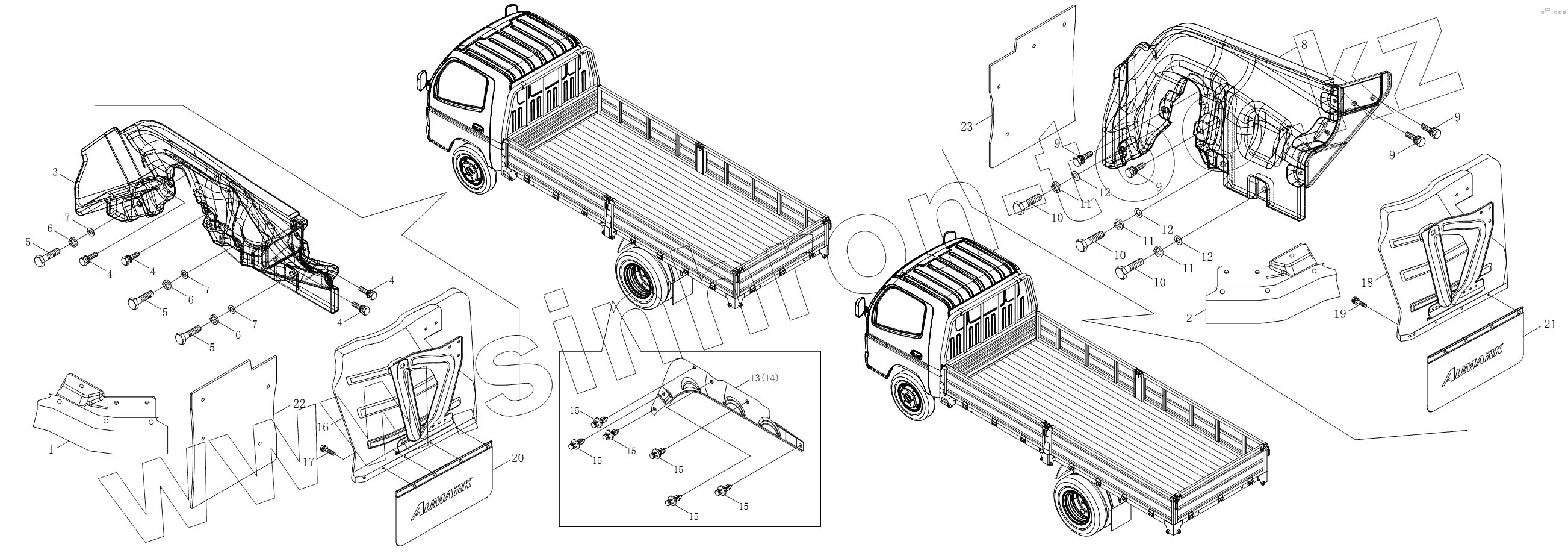 Каталог запасных частей к технике: Foton BJ1051, BJ1061 (Aumark). 1SB2008430201 Брызговики кузова