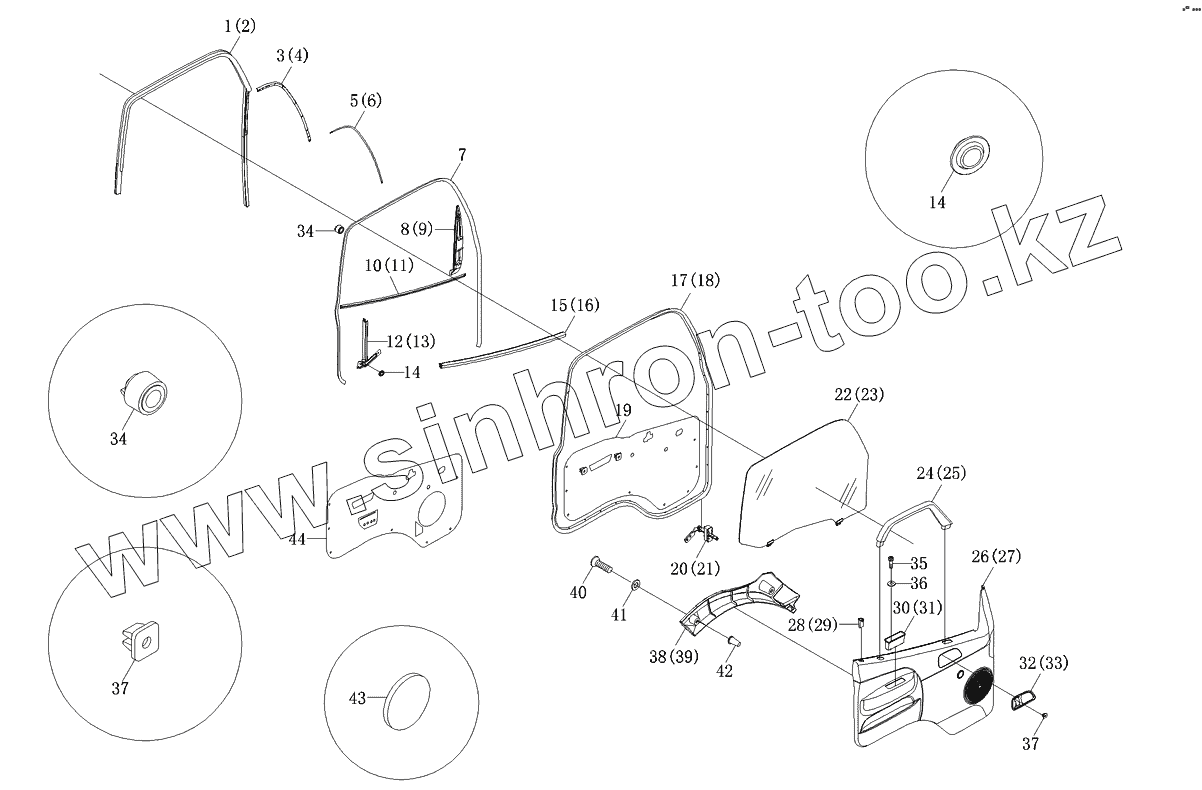 Каталог запасных частей к технике: Foton-BJ1039. Аксессуары передней боковой двери