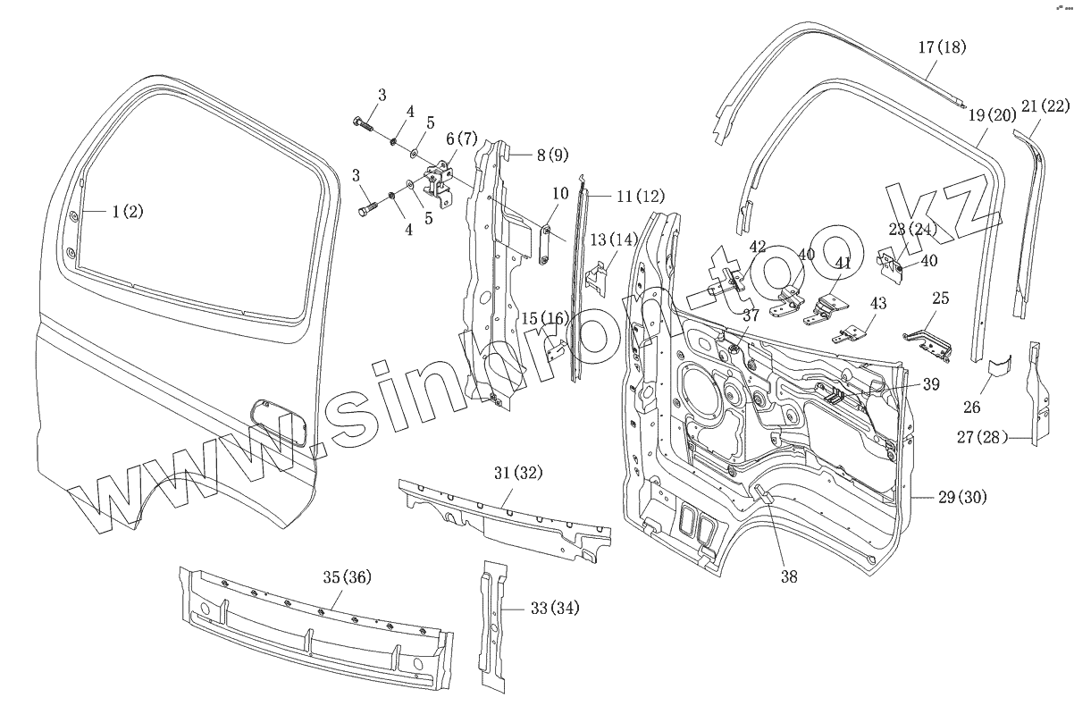 Каталог запасных частей к технике: Foton-BJ1039. Дверь