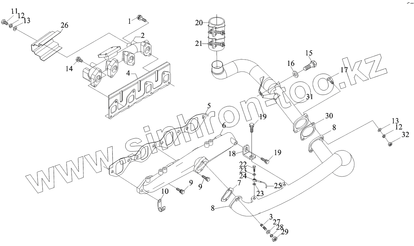Каталог запасных частей к технике: Foton-BJ1039. Система впуска и выпуска