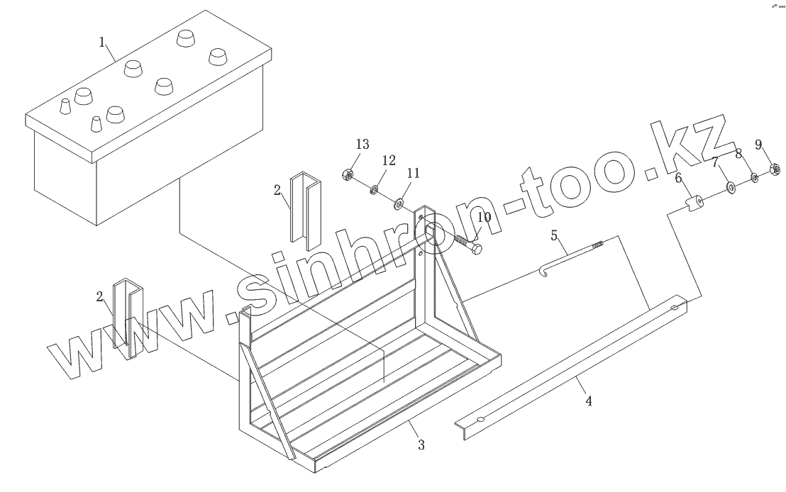 Каталог запасных частей к технике: Foton-BJ1039. Установка аккумулятора