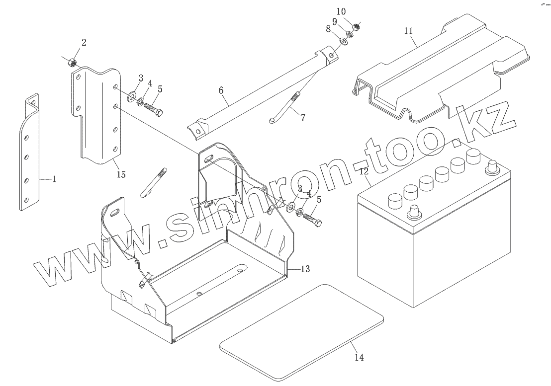 Каталог запасных частей к технике: Foton-BJ1039. Установка аккумулятора