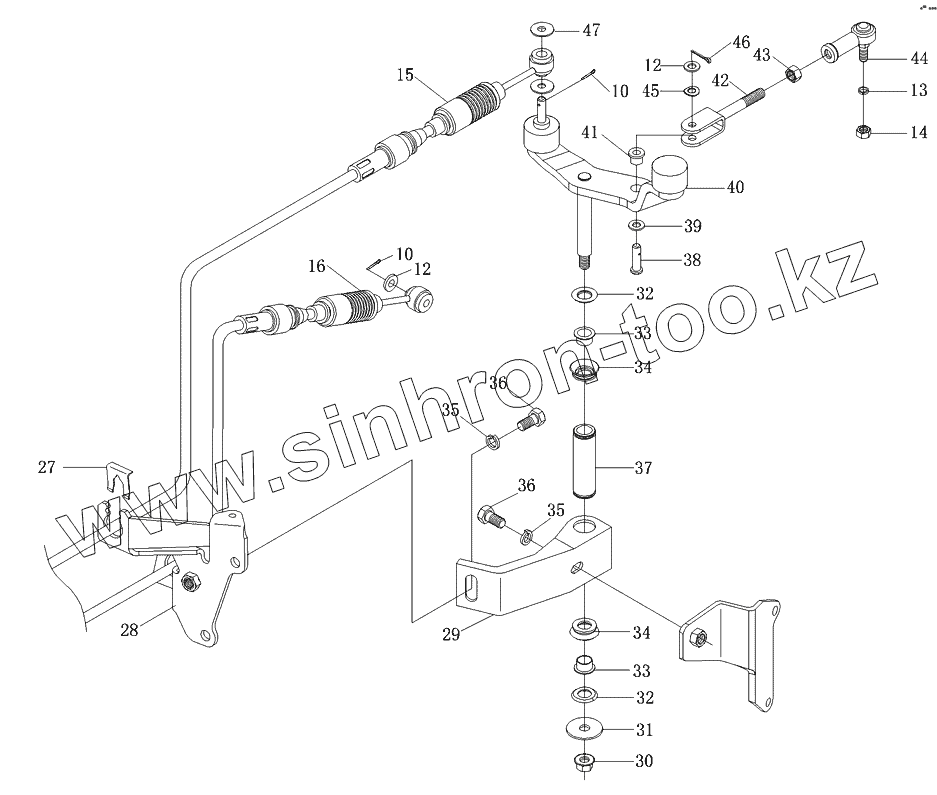 Каталог запасных частей к технике: Foton-BJ1039. Установка механизма управления переключением передач