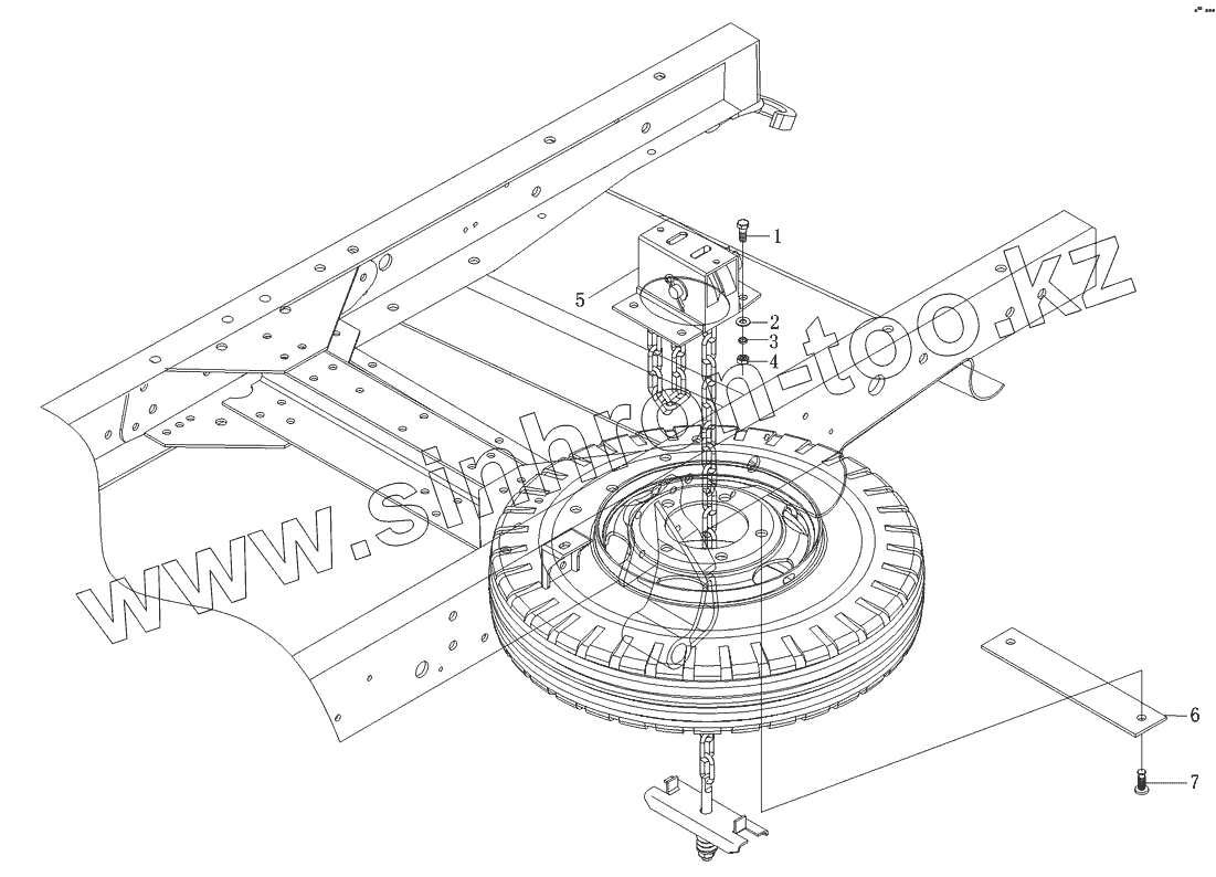 Каталог запасных частей к технике: Foton-BJ1039. Устройство подъемное запасного колеса