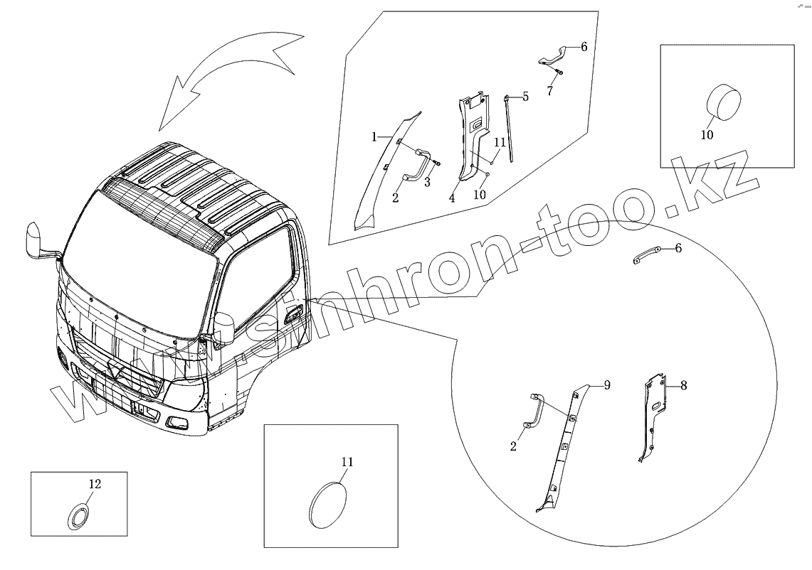 Каталог запасных частей к технике: Foton-BJ1049. Аксессуары боковой панели 1-рядной кабины