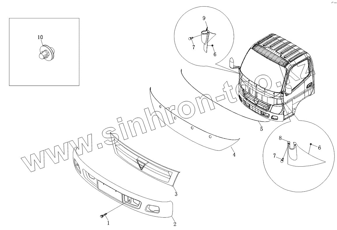 Каталог запасных частей к технике: Foton-BJ1049. Аксессуары передней панели