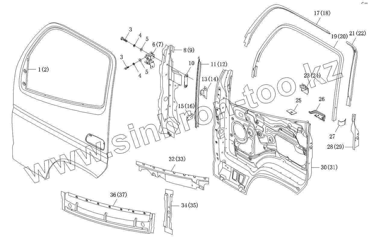 Каталог запасных частей к технике: Foton-BJ1049. Дверь