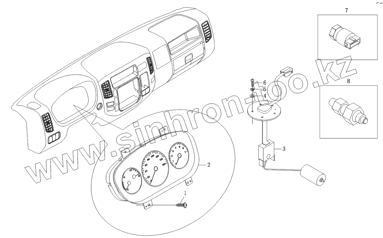 Каталог запасных частей к технике: Foton-BJ1049. Комбинация приборов и датчик топлива