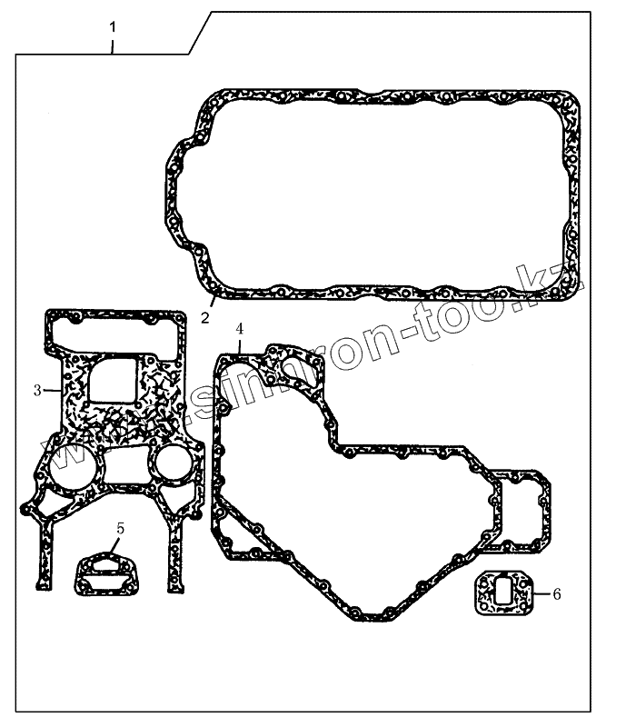 Каталог запасных частей к технике: Foton-BJ1049. Комплект прокладок нижней части двигателя