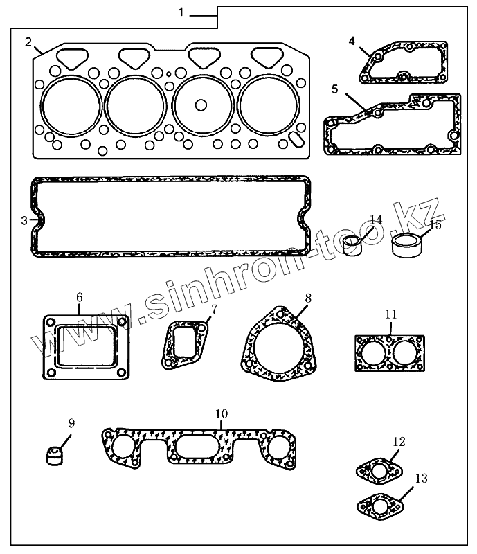 Каталог запасных частей к технике: Foton-BJ1049. Комплект прокладок верхней части двигателя