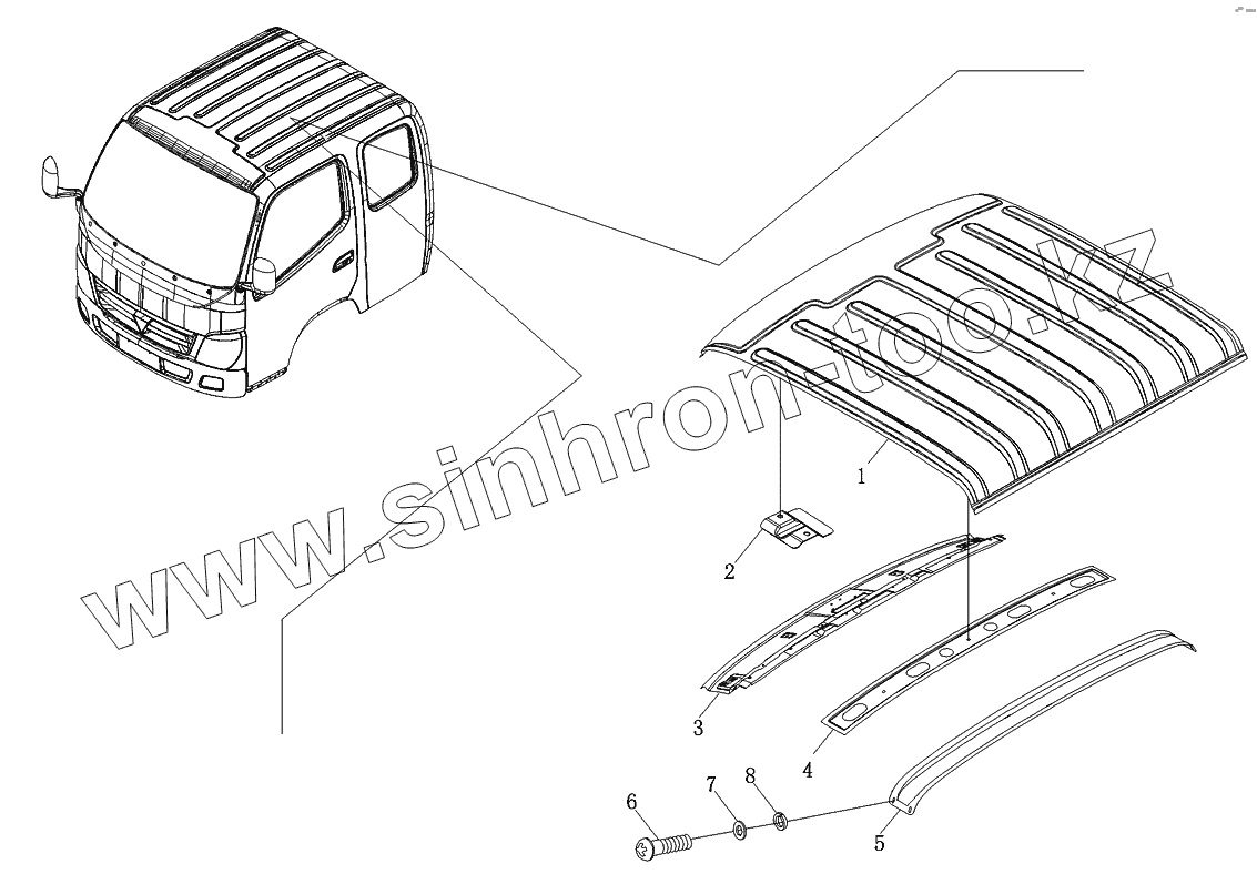 Каталог запасных частей к технике: Foton-BJ1049. Крыша 1,5-рядной кабины