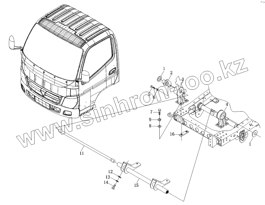 Каталог запасных частей к технике: Foton-BJ1049. Механизм опрокидывания и фиксации 1-рядной кабины