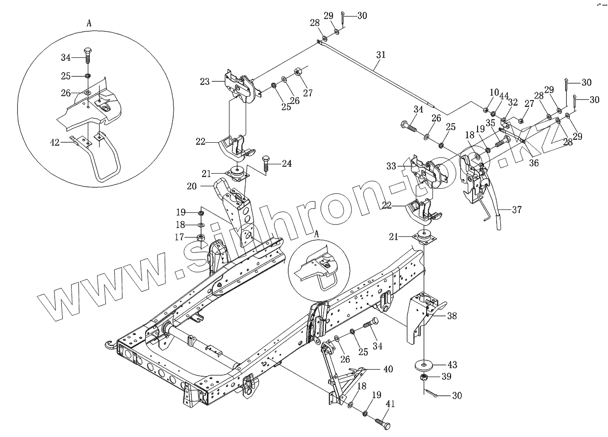 Каталог запасных частей к технике: Foton-BJ1049. Механизм опрокидывания и фиксации 1-рядной кабины