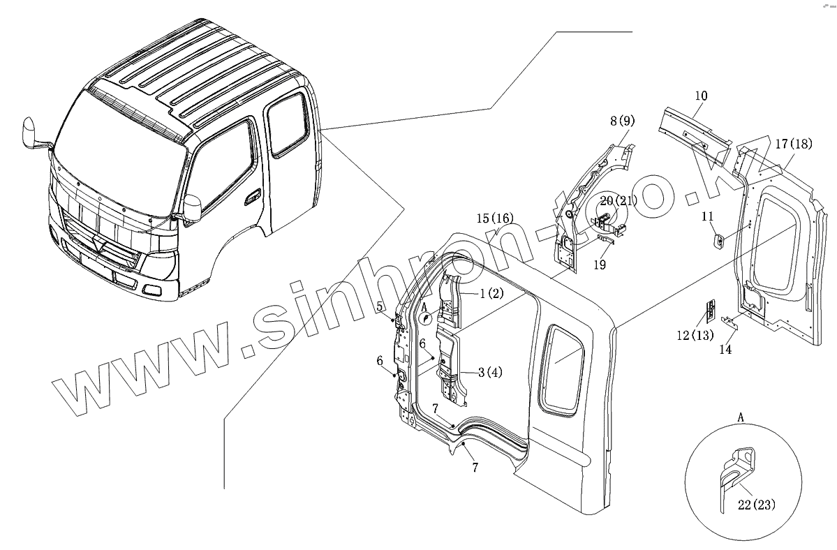 Каталог запасных частей к технике: Foton-BJ1049. Панель боковая 1,5-рядной кабины