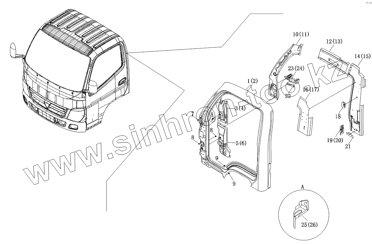 Каталог запасных частей к технике: Foton-BJ1049. Панель боковая 1-рядной кабины