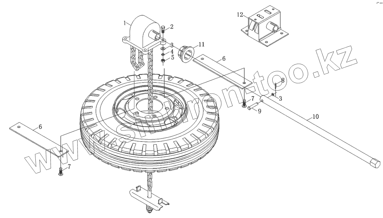 Каталог запасных частей к технике: Foton-BJ1049. Подъемное устройство запасного колеса