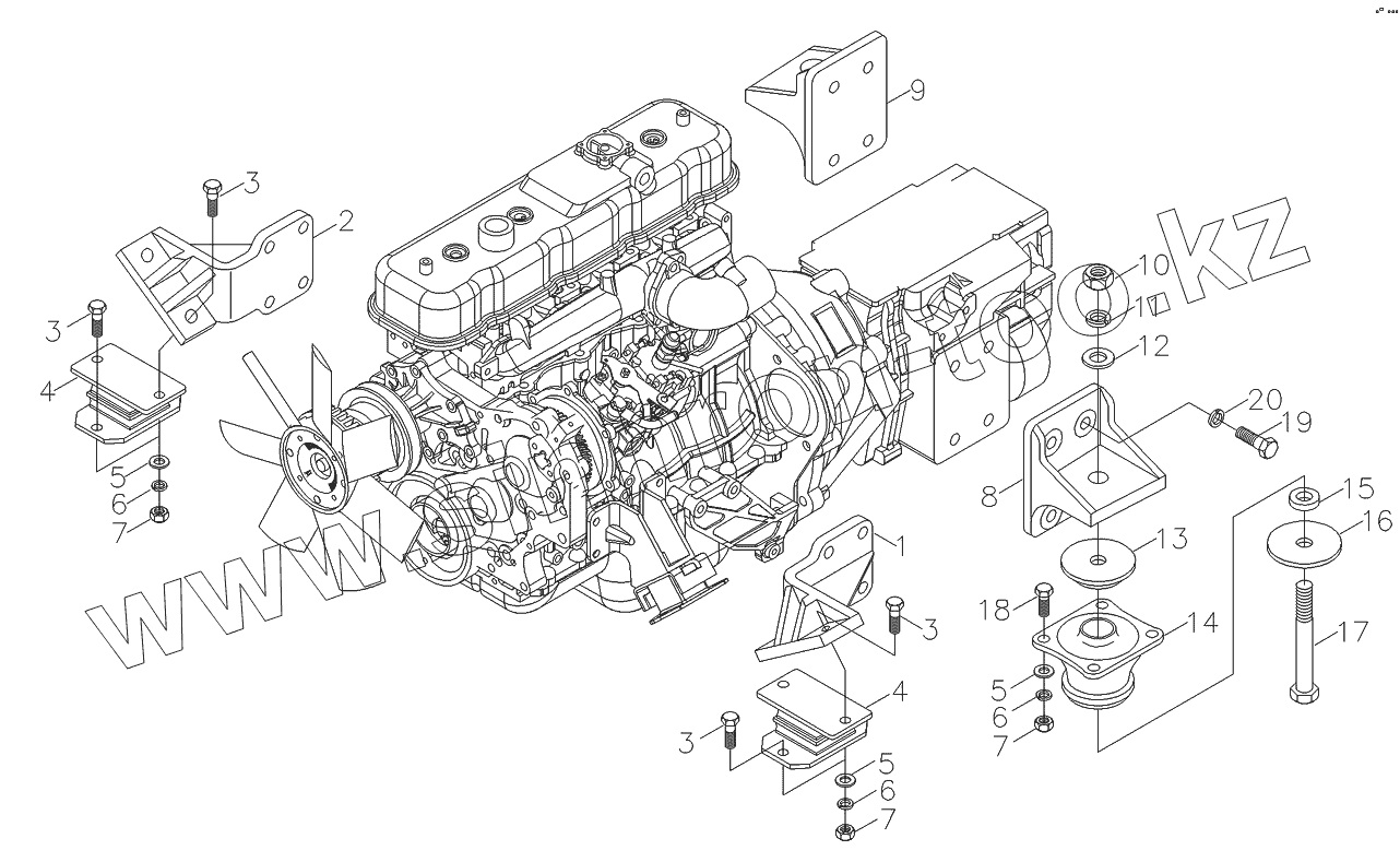 Каталог запасных частей к технике: Foton-BJ1049. Подвеска силового агрегата