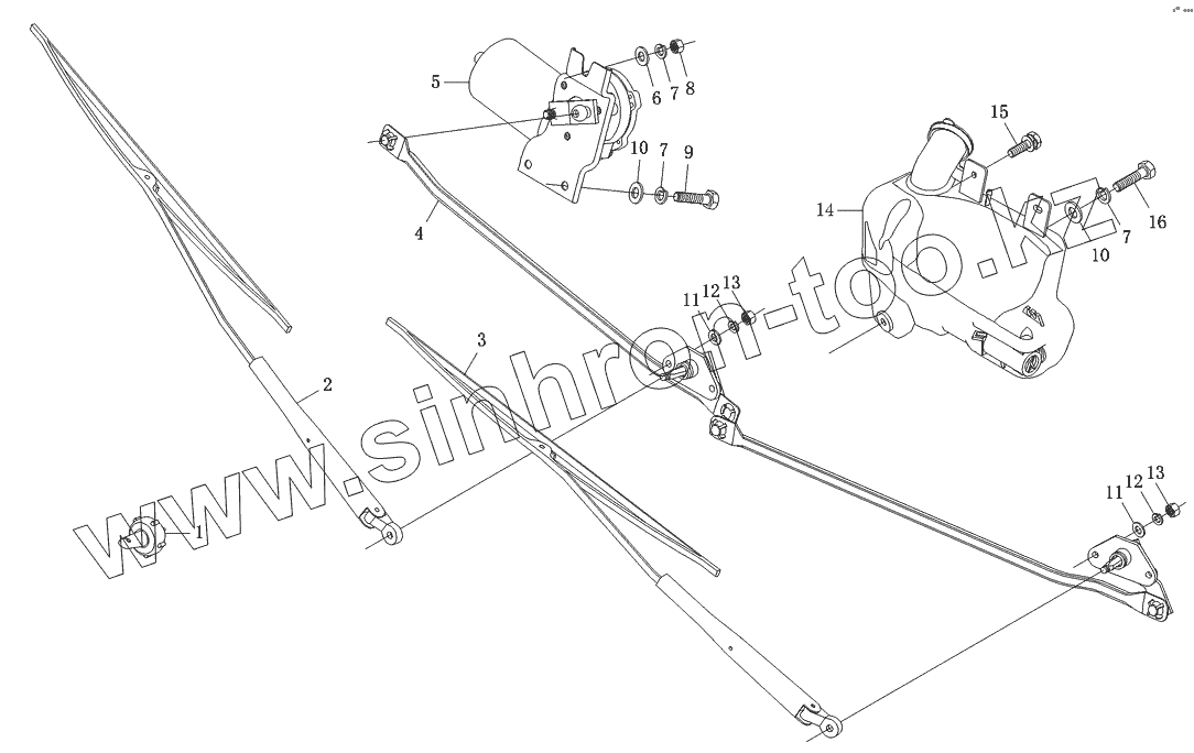 Каталог запасных частей к технике: Foton-BJ1049. Стеклоочиститель и стеклоомыватель