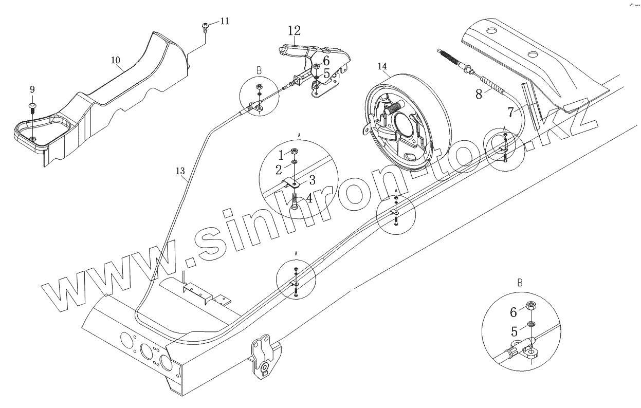 Каталог запасных частей к технике: Foton-BJ1049. Стояночный тормоз
