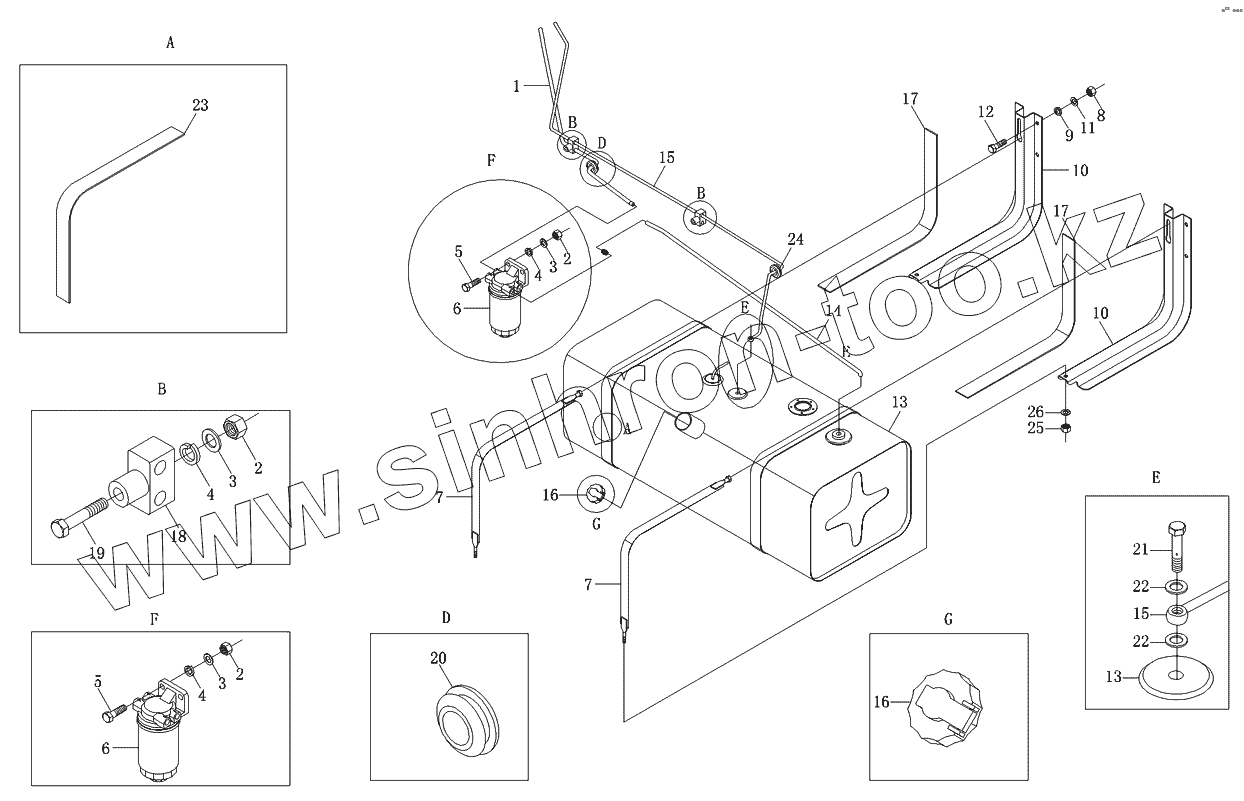 Каталог запасных частей к технике: Foton-BJ1049. Топливная система