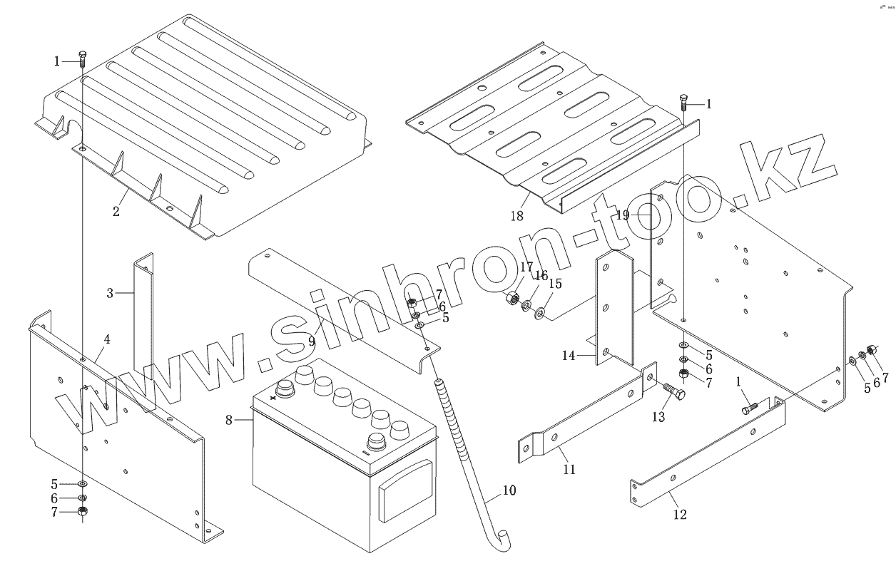 Каталог запасных частей к технике: Foton-BJ1049. Установка аккумулятора