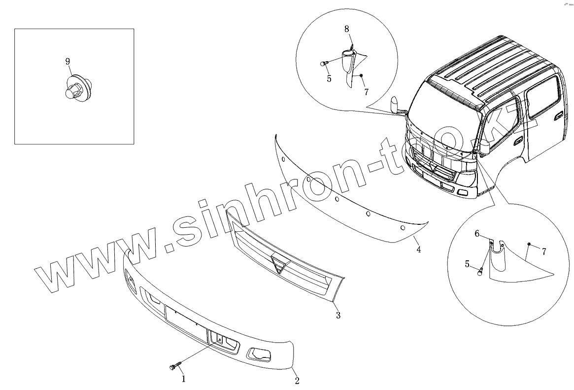 Каталог запасных частей к технике: Foton-BJ1049. Аксессуары передней панели