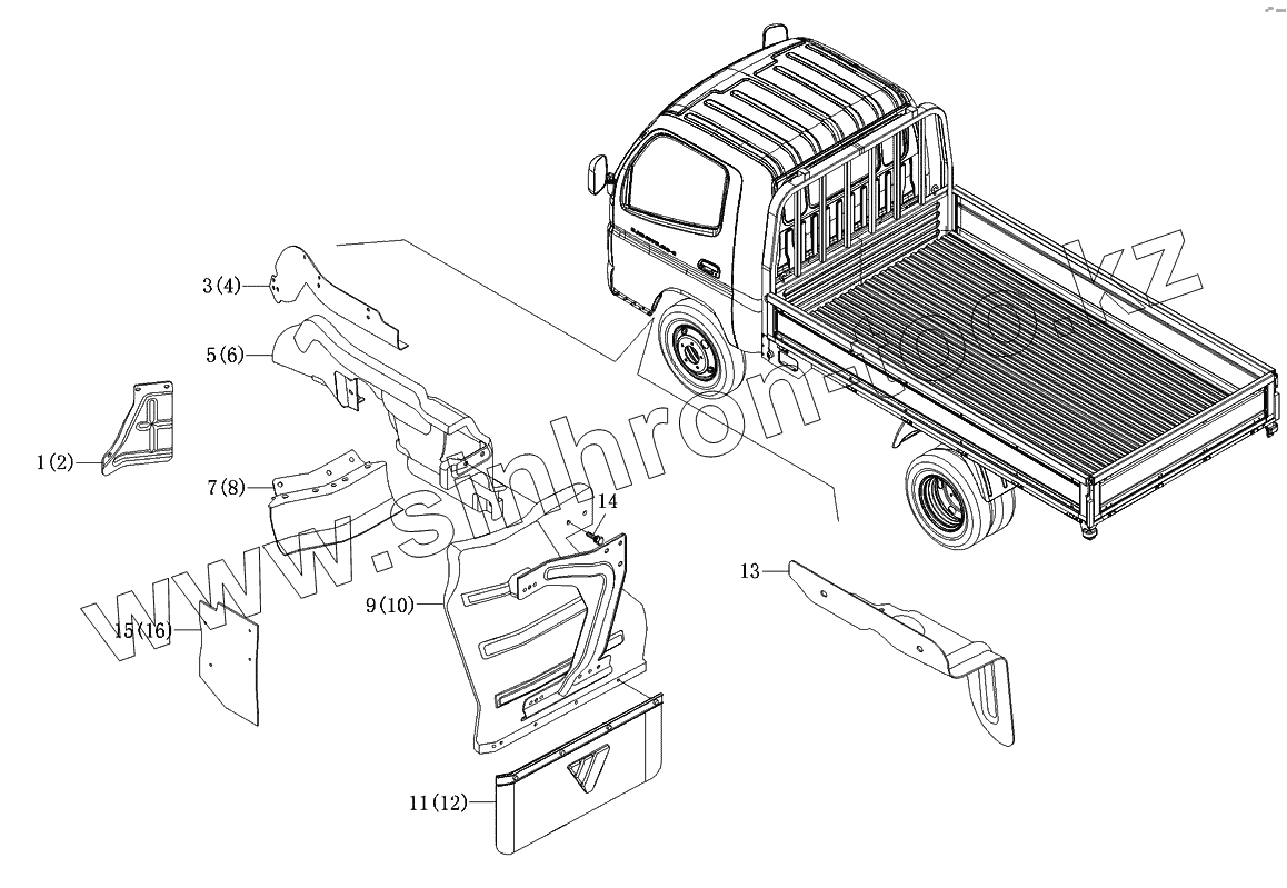Каталог запасных частей к технике: Foton-BJ1049. Брызговик