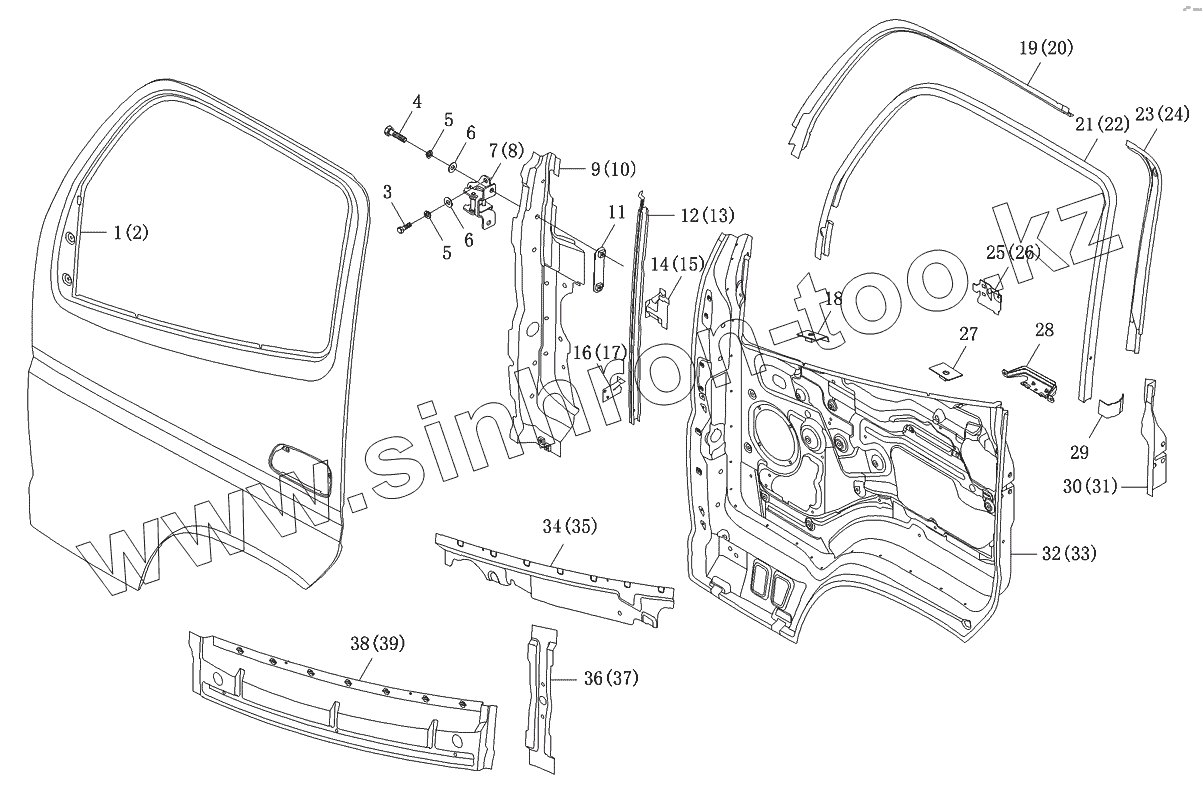 Каталог запасных частей к технике: Foton-BJ1049. Дверь передняя