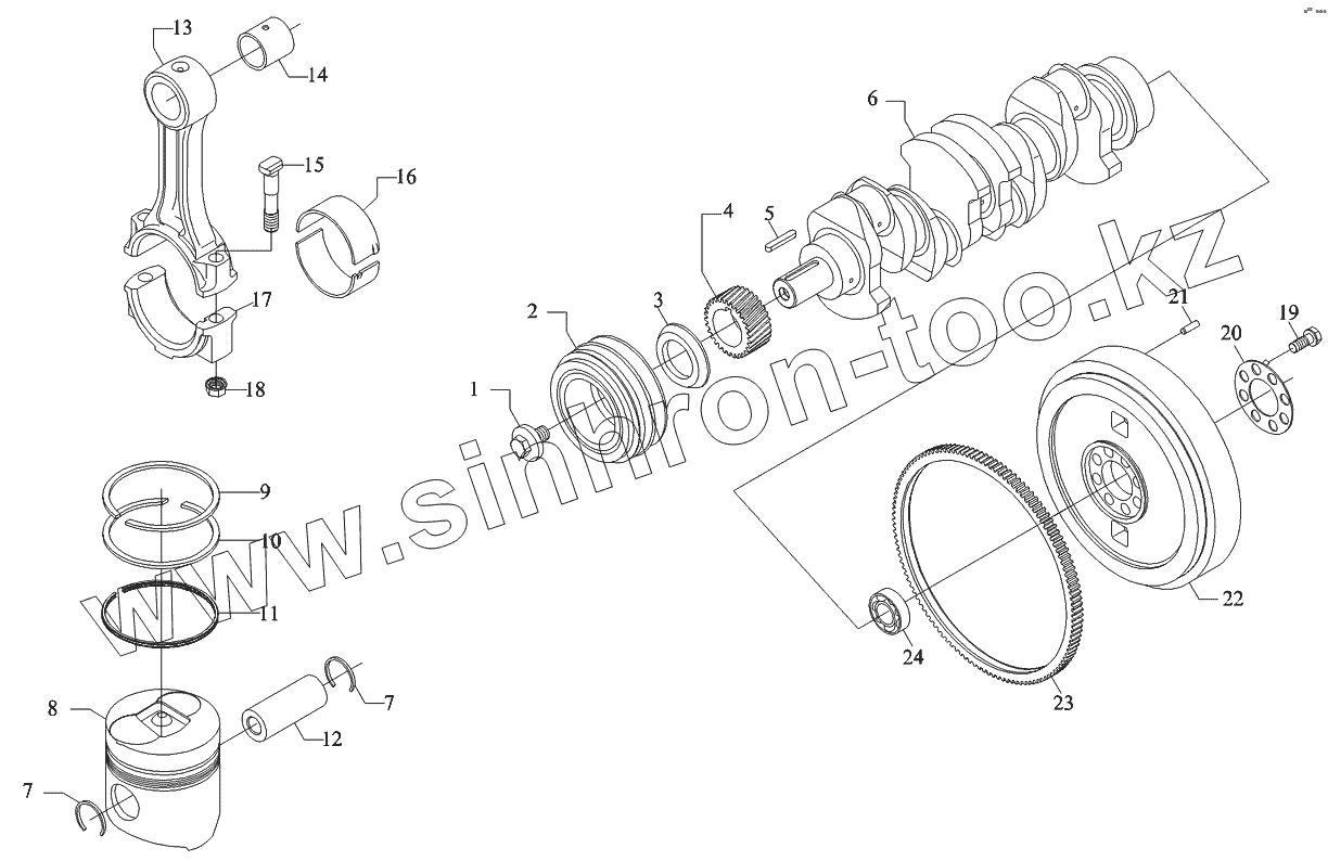 Коленвал, поршень, шатун, маховик