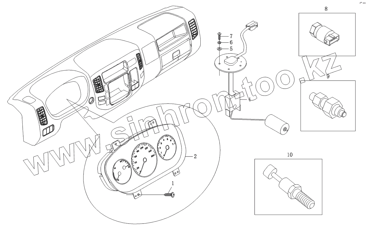Каталог запасных частей к технике: Foton-BJ1049. Комбинация приборов и датчик топлива