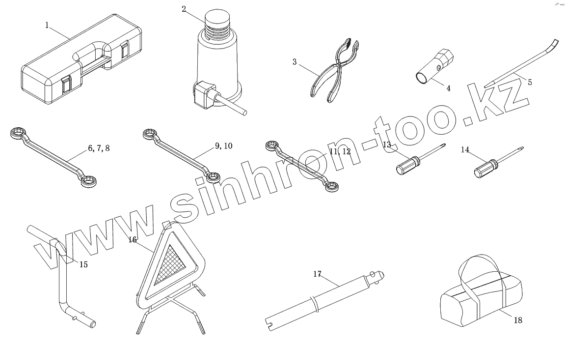 Каталог запасных частей к технике: Foton-BJ1049. Комплект инструментов