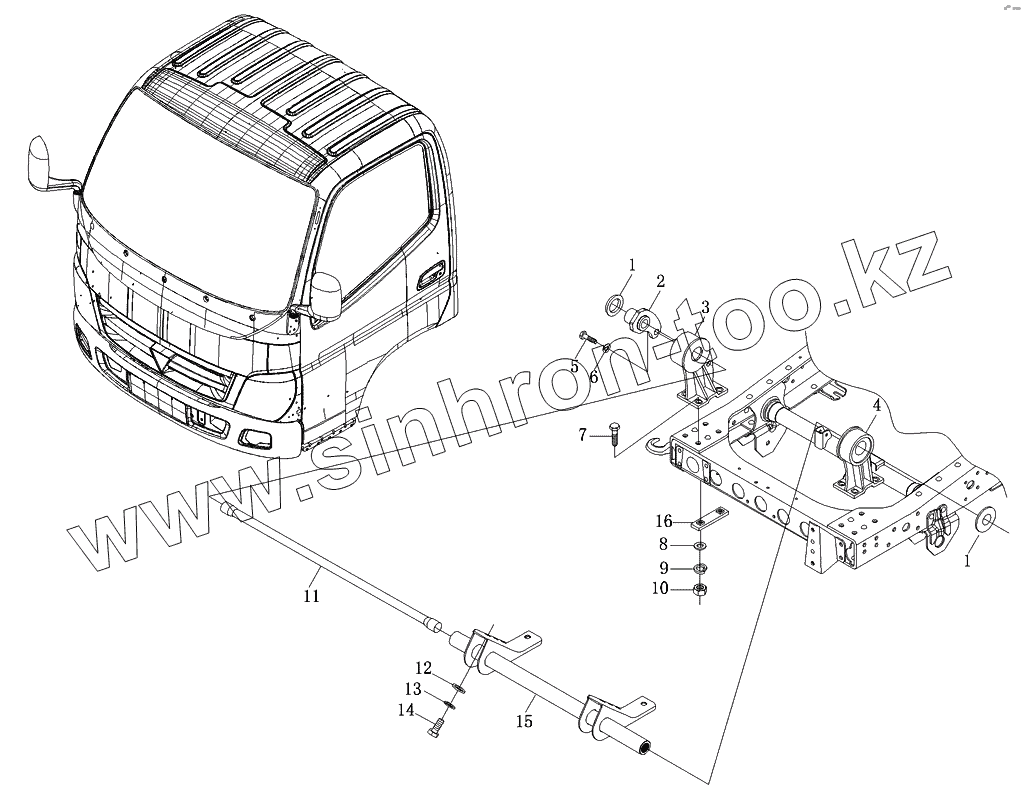 Каталог запасных частей к технике: Foton-BJ1049. Механизм опрокидывания и фиксации 1-рядной кабины