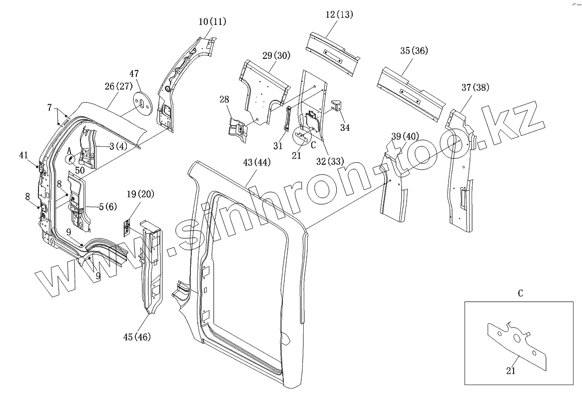 Каталог запасных частей к технике: Foton-BJ1049. Панель боковая 2-рядной кабины
