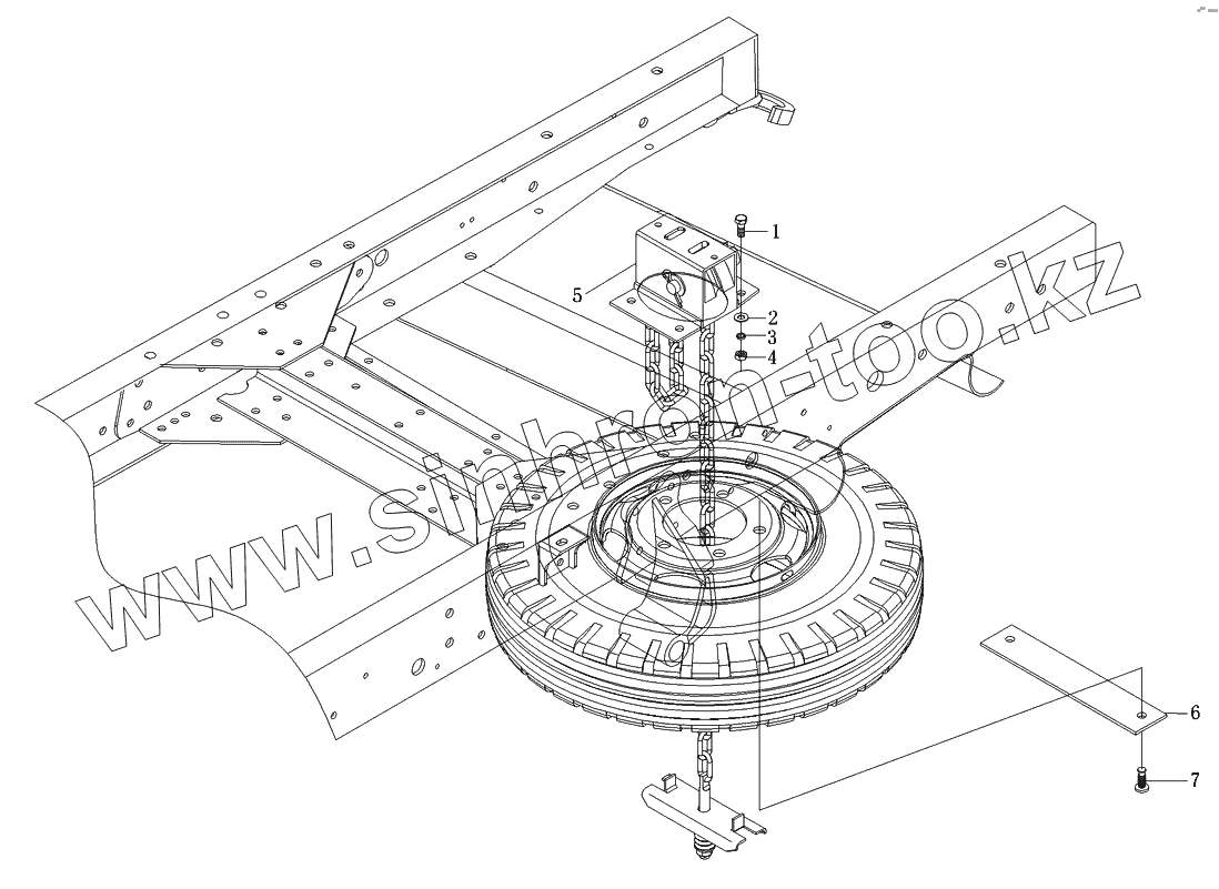 Каталог запасных частей к технике: Foton-BJ1049. Подъемное устройство запасного колеса