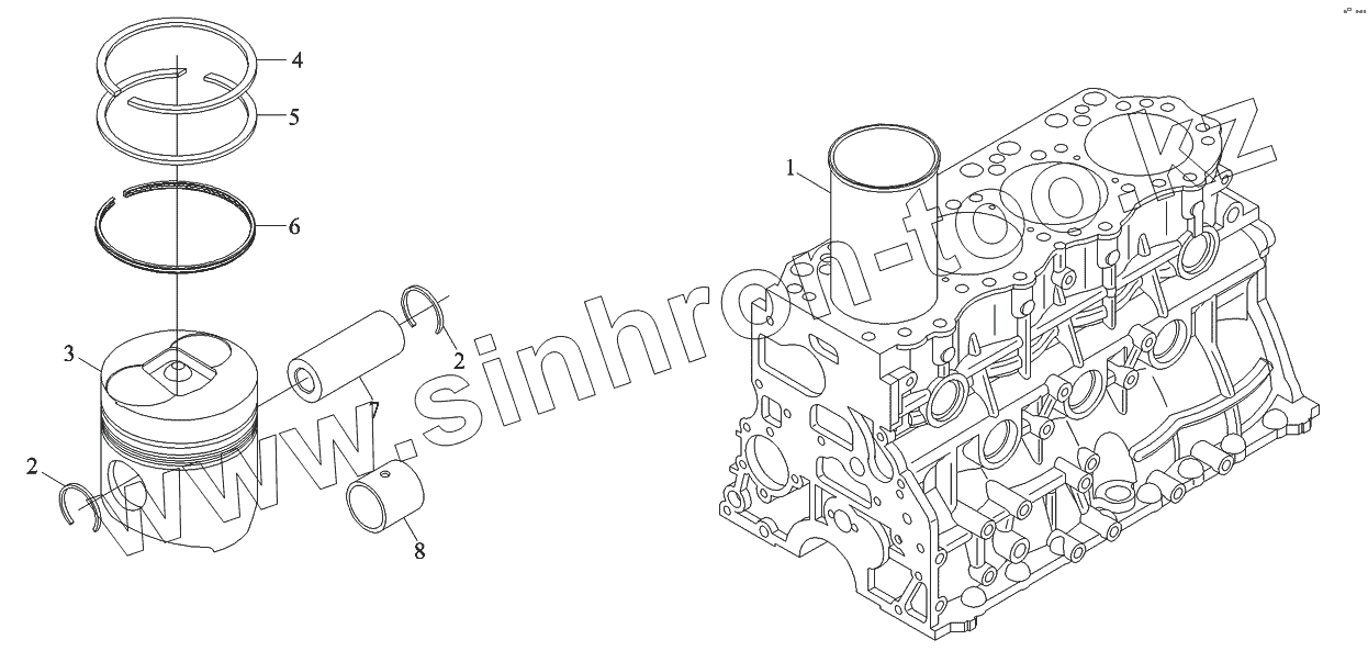 Каталог запасных частей к технике: Foton-BJ1049. Поршень, гильза (ремонтный комплект 3)