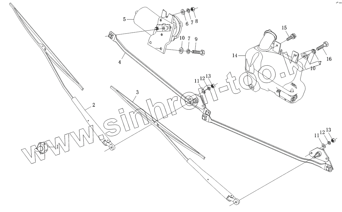 Каталог запасных частей к технике: Foton-BJ1049. Стеклоочиститель и стеклоомыватель
