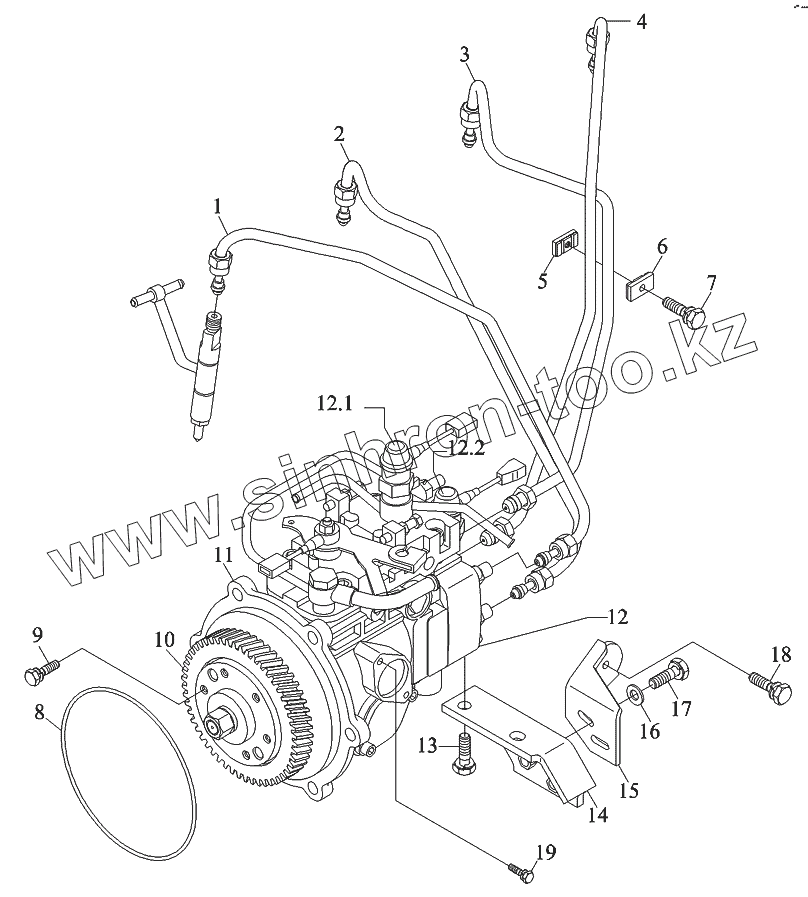 Каталог запасных частей к технике: Foton-BJ1049. Топливный насос и топливопроводы