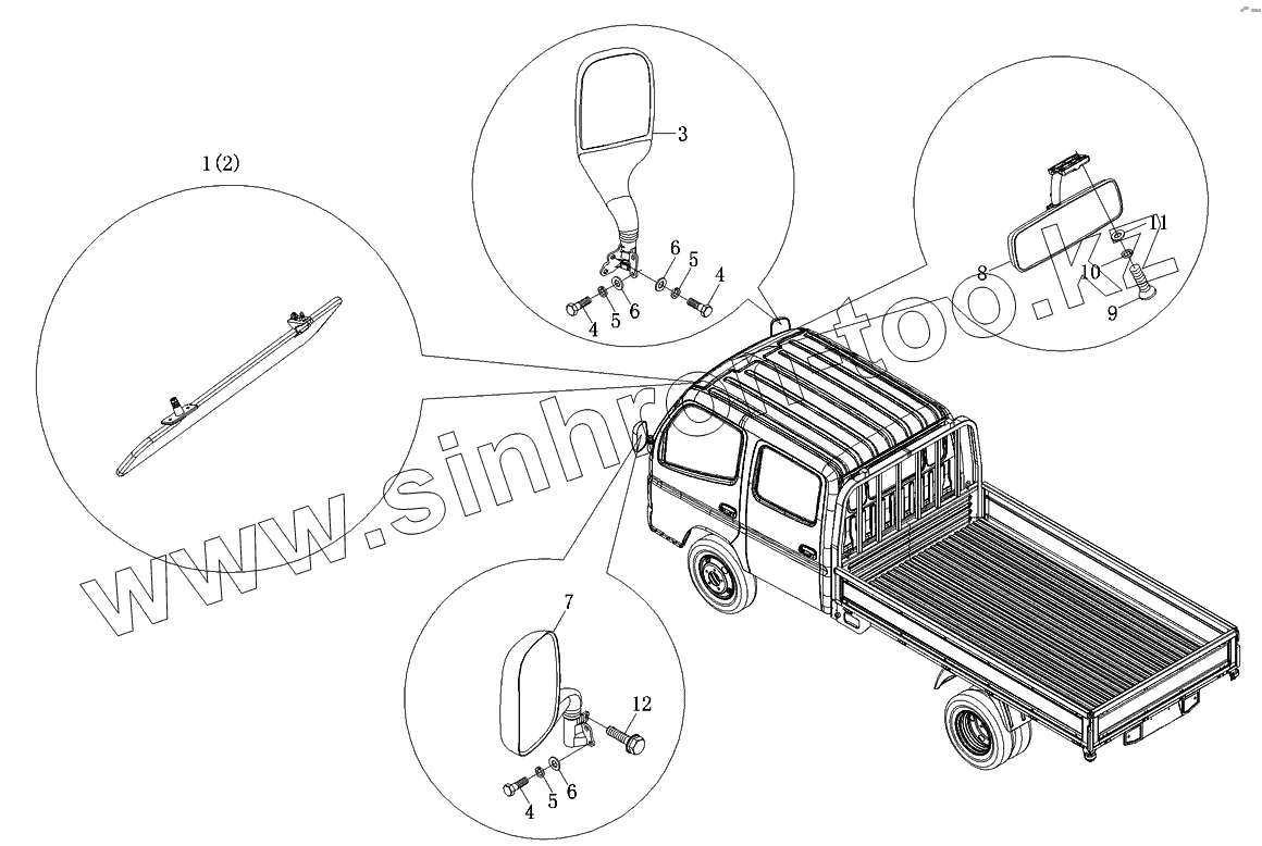 Каталог запасных частей к технике: Foton-BJ1049. Зеркало заднего вида и солнцезащитный козырек