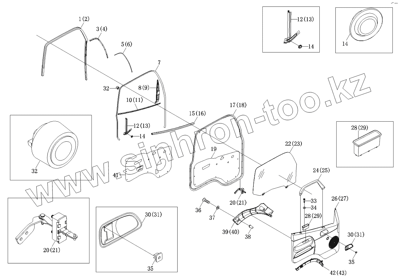 Каталог запасных частей к технике: Foton-BJ1069. Аксессуары двери
