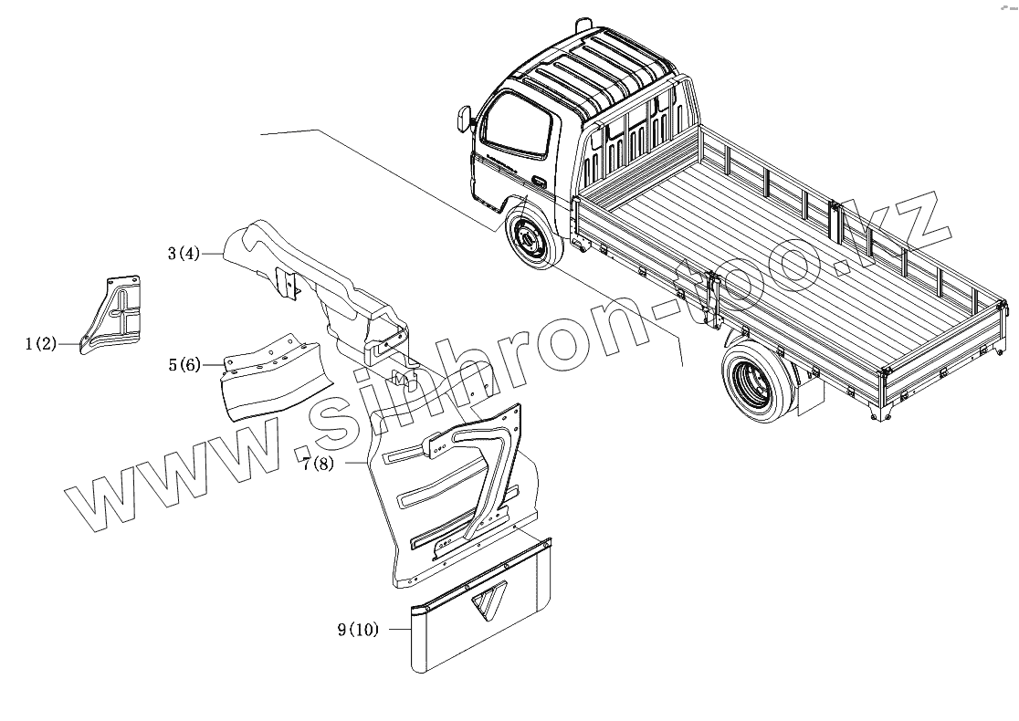 Каталог запасных частей к технике: Foton-BJ1069. Брызговик
