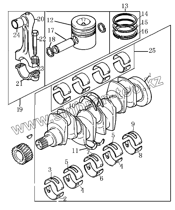 Каталог запасных частей к технике: Foton-BJ1069. Коленчатый вал, поршень, шатун