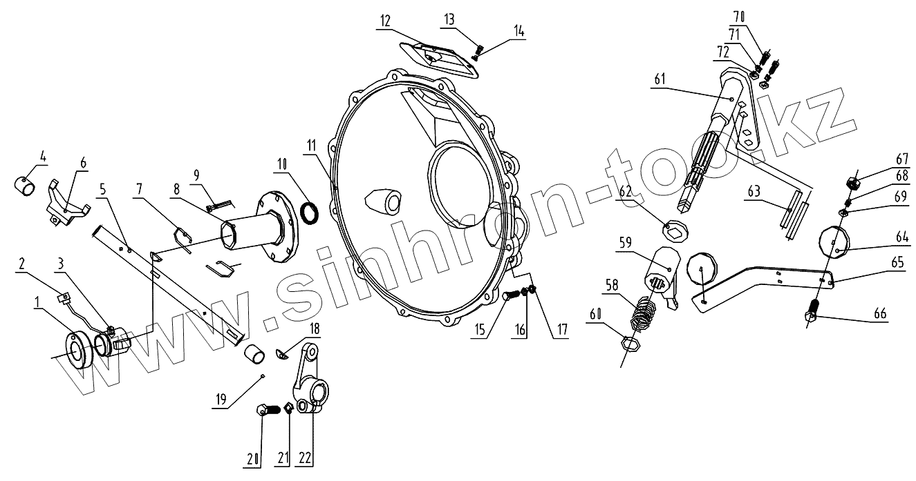 Каталог запасных частей к технике: Foton-BJ1069. Механизм управления сцеплением