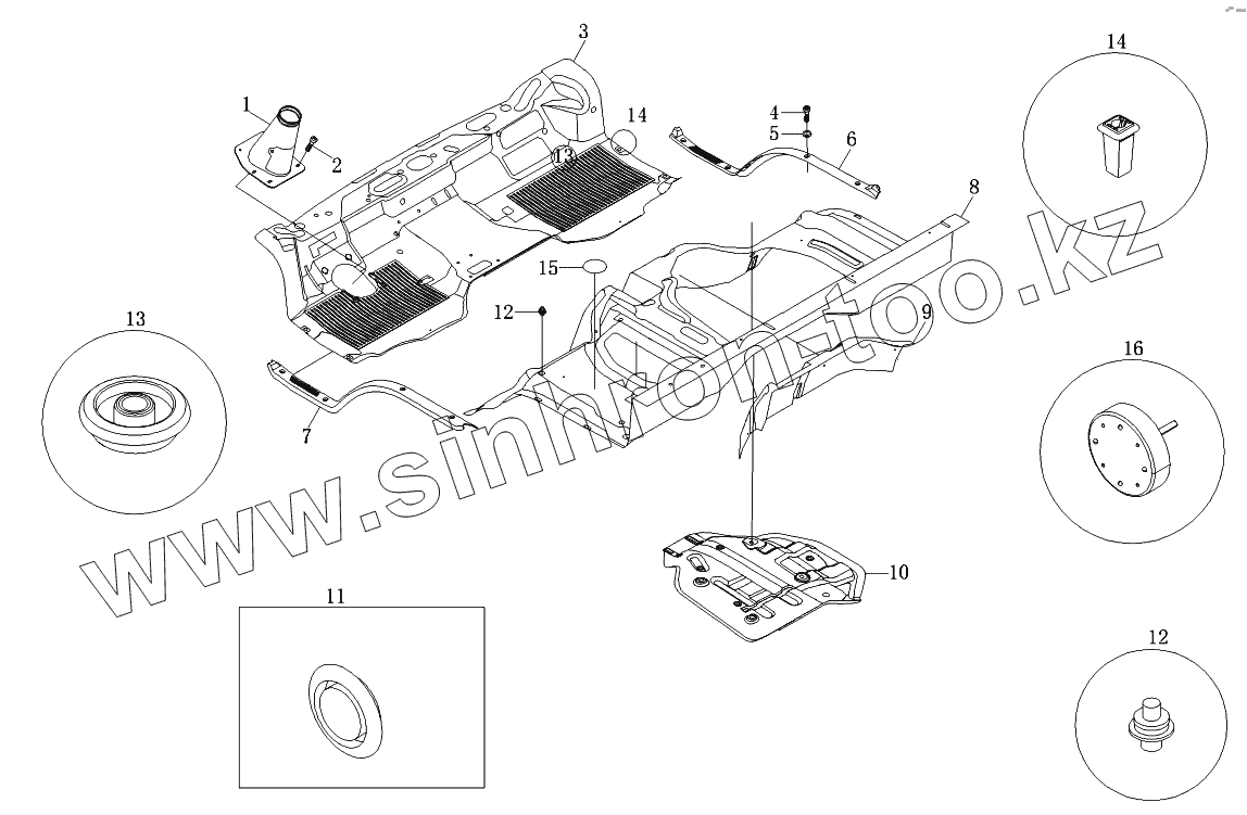 Каталог запасных частей к технике: Foton-BJ1069. Панели пола