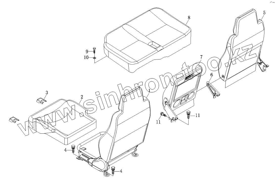 Каталог запасных частей к технике: Foton-BJ1069. Сиденья