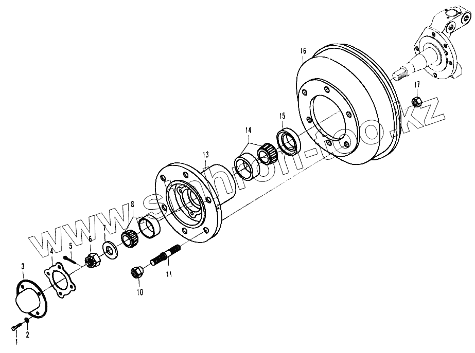Каталог запасных частей к технике: Foton-BJ1069. Ступица переднего колеса и барабан тормозной