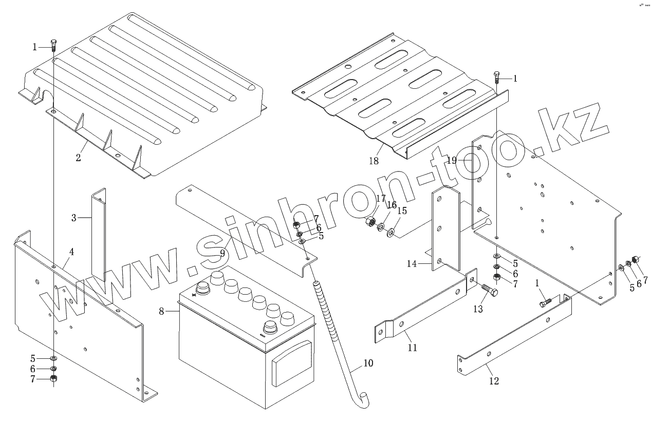 Каталог запасных частей к технике: Foton-BJ1069. Установка аккумулятора