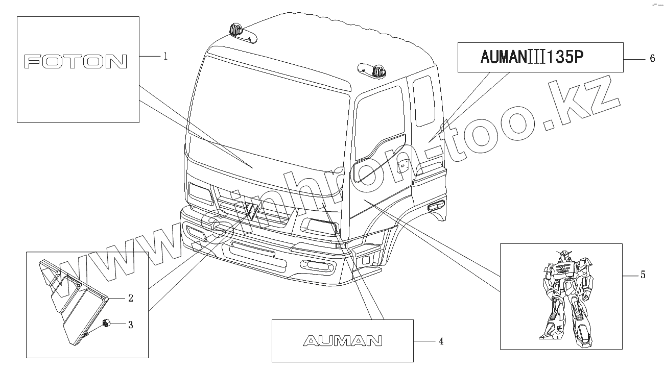 Каталог запасных частей к технике: Foton-BJ1099. Логотипы кабины