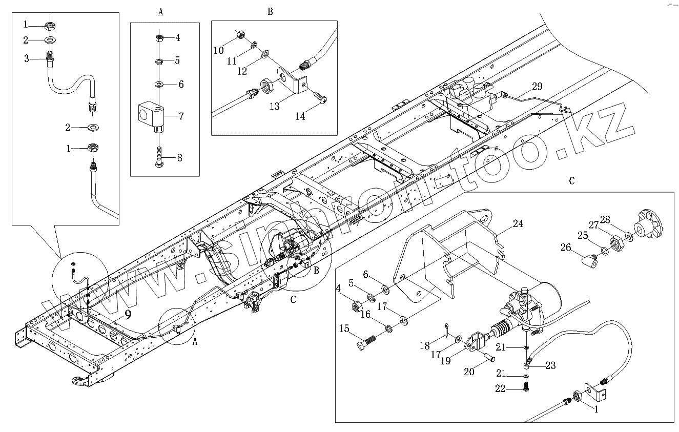Каталог запасных частей к технике: Foton-BJ1099. Привод сцепления
