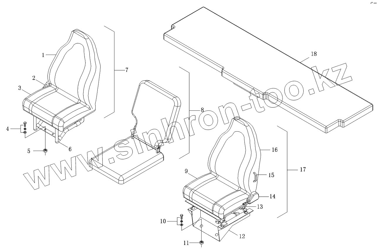Каталог запасных частей к технике: Foton-BJ1099. Сиденья